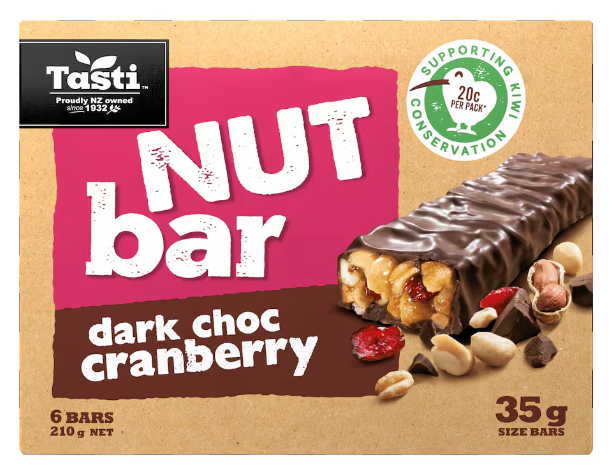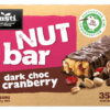Dark Choc cranberry Nut Bar Ingredients Nuts (41%) (Roasted Peanuts (41%), Almonds, Cashews), Dark Choc Compound (28%) (Sugar, Vegetable Oil, Cocoa Powder, Milk Solids, Emulsifiers (Soy Lecithin), Natural Flavour), Glucose Syrup (Sulphites), Sweetened Dried Cranberries (4%) (Contains Cranberries (2.5%)), Puffed Wheat, Sunflower Oil, Brown Sugar, Humectant (Glycerol), Sugar, Honey, Natural Flavour, Emulsifier (Soy Lecithin)
